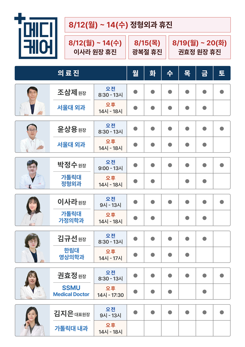 이전글 ▲메디케어 9월 진료시간표 / 휴진안내