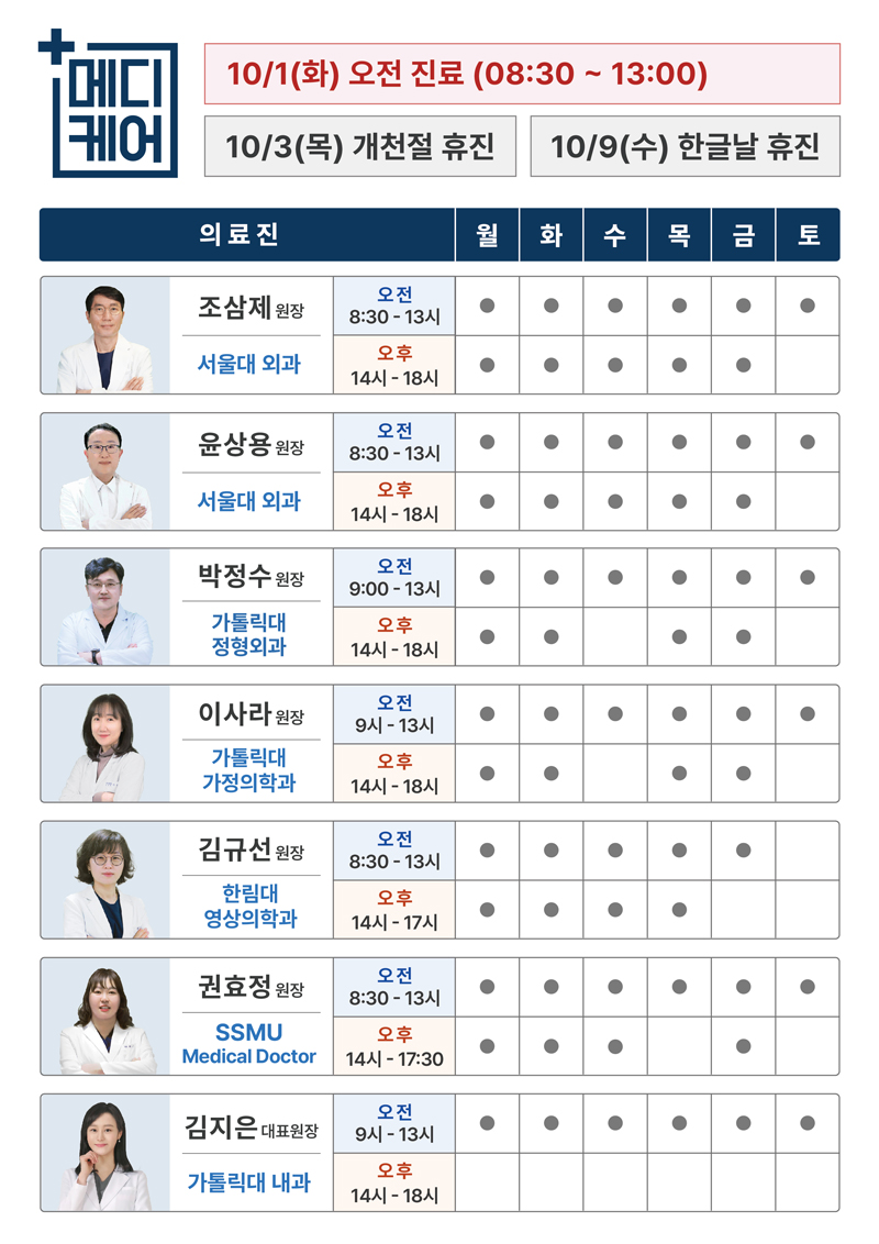 10월 진료시간표 및 휴진일정 안내드립니다.